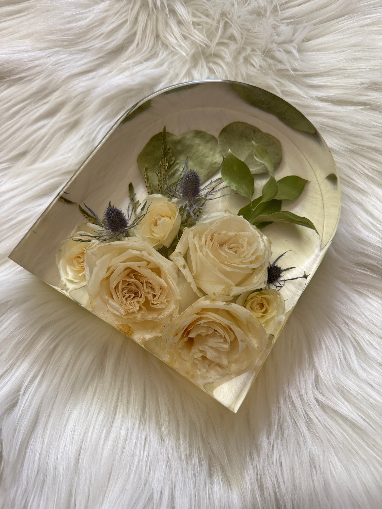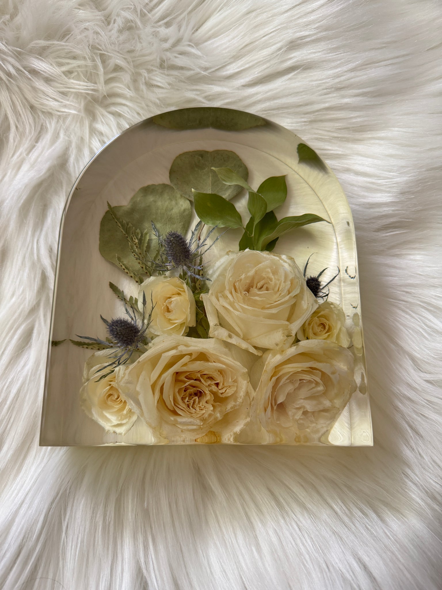 Description: Custom order of 8" arch made of casting resin for floral preservation.
